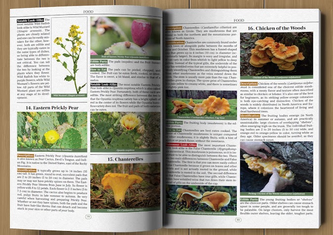 Encontrarás imágenes de plantas, árboles y hongos para que puedas identificarlos fácilmente. Las plantas están por todas partes a tu alrededor, y si logras identificarlas, nunca te faltará comida en la naturaleza. Así que, si tienes dudas sobre una planta, hongo o árbol que encuentres, abre tu nueva guía para saber qué hacer con él.